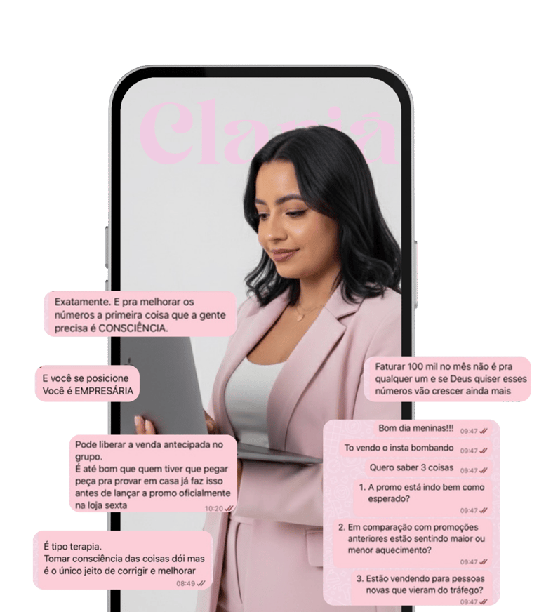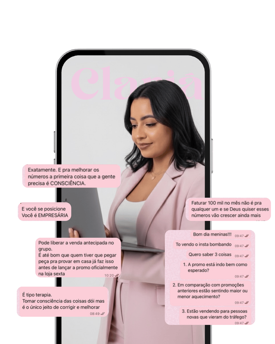 A Clariá é uma consultoria para lojistas que querem sair da confusão operacional e aprender, na prática, a gerir um e-commerce saudável e lucrativo.